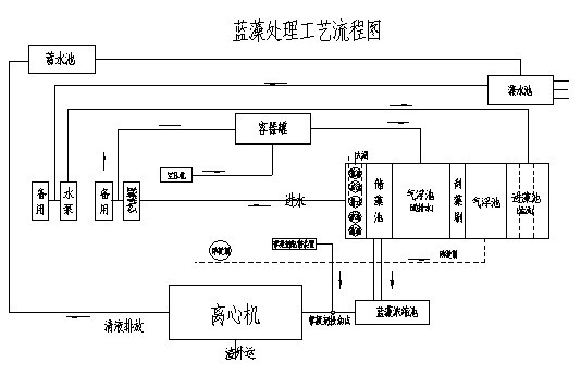1.藍(lán)藻處理系統(tǒng)工藝流程圖(見圖1)