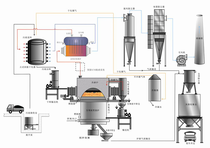 污泥干化 熱解工藝流程示意圖